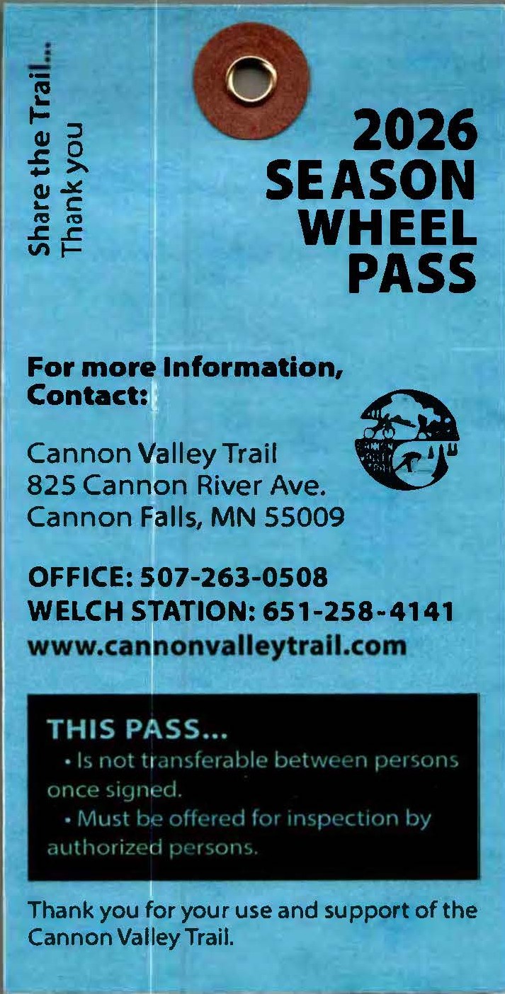 A Wheel Pass is required if you are 18 years or older and using wheels on the trail – bicycles, in-line skates, skate boards. (Yes, E-bikes are allowed.) From April 1- October 31.